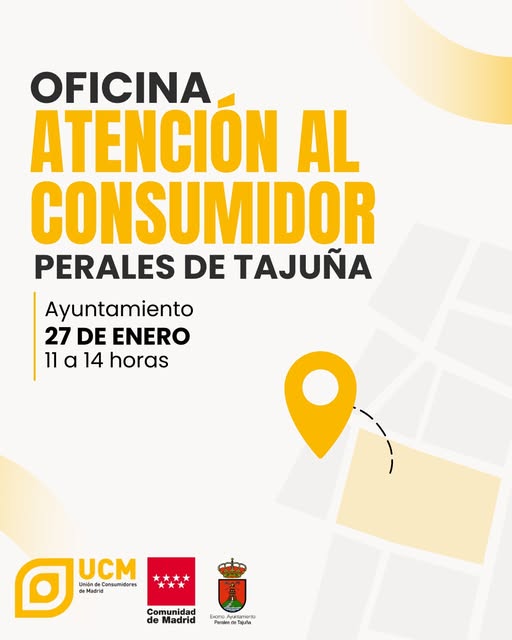 S i tienes que hacer una reclamación, devolver una compra o has tenido algún problema con un regalo de estas Navidades, el próximo 27 de enero, la Oficina de Atención al Consumidor estará en el Ayuntamiento de Perales de Tajuña, de 11:00 a 14:00 horas, para resolver dudas, orientar a los vecinos y ayudarles a conocer y defender sus derechos como consumidores.