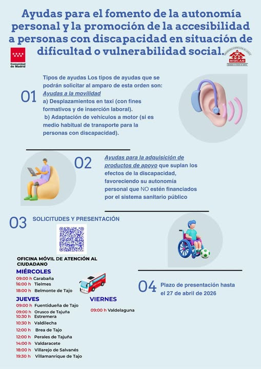 A bierto el plazo para solicitar las ayudas de la Comunidad de Madrid dirigidas a personas con discapacidad en situación de vulnerabilidad. Puedes presentar tu solicitud hasta el 27 de abril.