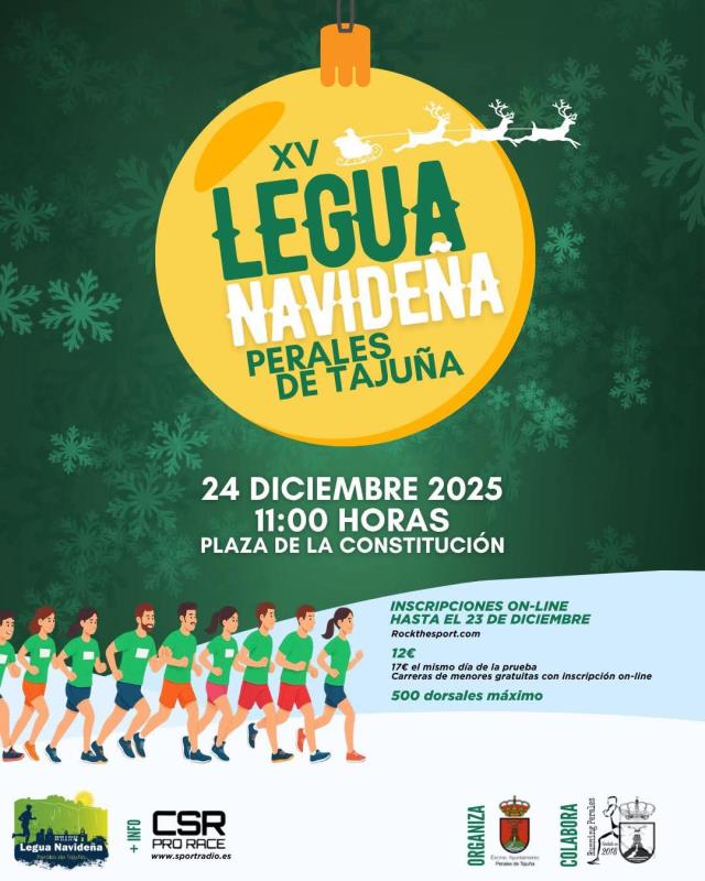 ¡ Ya se siente la Navidad en Perales! Ya puedes conseguir tu dorsal para la XV edición de la Legua Navideña de Perales, el evento deportivo más multitudinario de la comarca que volverá a reunir, el 24 de diciembre, a cientos de runners en nuestro pueblo para comenzar la Navidad a lo grande y, de paso hacerse con alguno de los decenas de premios y sorteos.