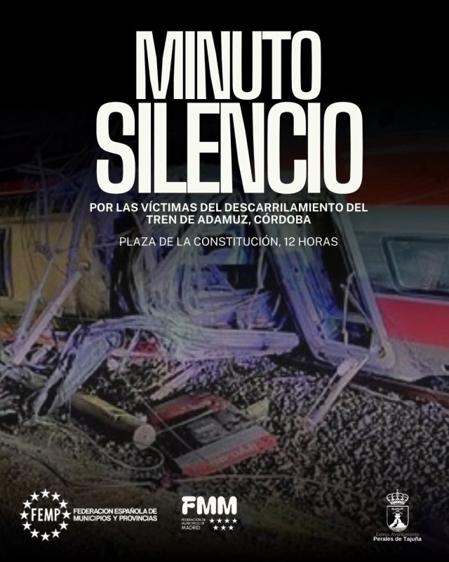 E l Ayuntamiento de Perales de Tajuña se ha sumado a la convocatoria que han realizado la Federación Española de Municipios y Provincias y la Federación de Municipios de Madrid para guardar un minuto de silencio en memoria de las víctimas del terrible accidente de ferrocarril que tuvo lugar este domingo en Adamuz (Córdoba).