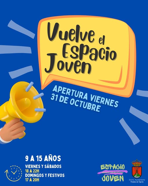 A partir del viernes 31 de octubre, regresa el Espacio Joven en el Centro Cultural 'San Blas' para disfrutar de las tardes del fin de semana. Edad entre 9 y 15 años.
