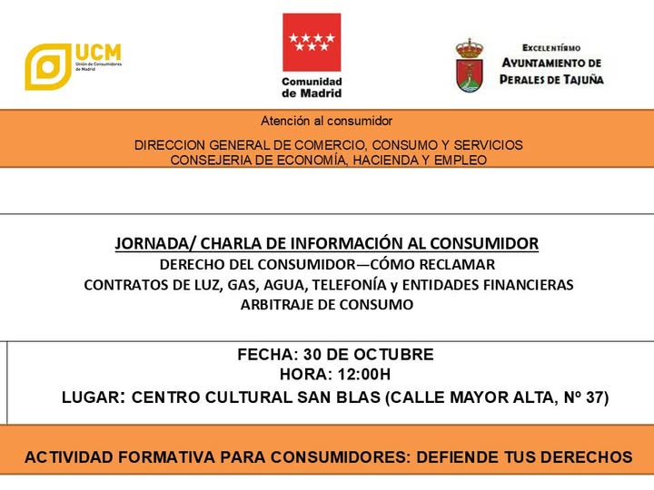 ¿ Sabes cómo reclamar si tienes un problema con tu factura de luz o tu compañía de teléfono? La Oficina de Información al Consumidor de la Comunidad de Madrid ofrecerá una charla donde aprenderás cómo actuar ante incidencias, cómo presentar reclamaciones y cómo funciona el sistema de arbitraje de consumo. Para defender tus derechos con información práctica y útil.