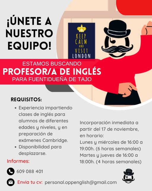 Vacante para profesor/a de inglés en Fuentidueña de Tajo