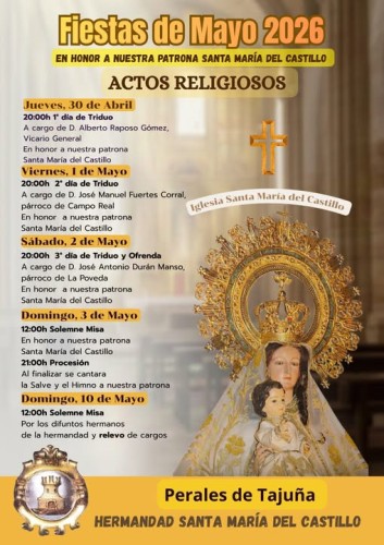 Actos religiosos de las Fiestas de Mayo 2026 en Honor a Nuestra Patrona Santa María del Castillo.