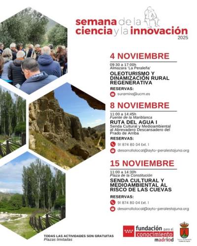 La Semana de la Ciencia y la Innovación de Madrid celebra su XXV Aniversario, y Perales de Tajuña no podía faltar a esta celebración con sus habituales rutas didácticas al Prado de Arriba y al Risco de las Cuevas, que serán los días 8 y 15 de noviembre, de forma totalmente gratuita previa inscripción en el Ayuntamiento (Área de Desarrollo Local).