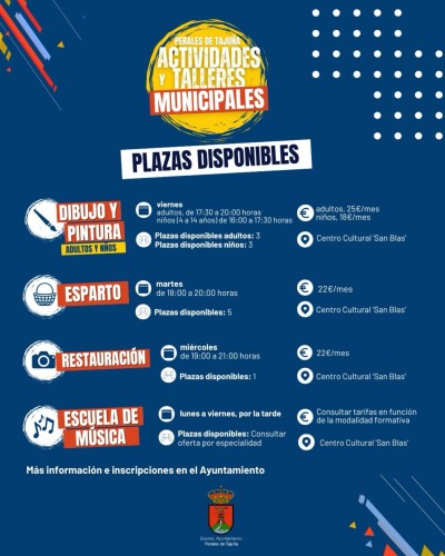Los talleres y actividades de dibujo y pintura, esparto, restauración y la Escuela de Música cuentan con plazas libres para que disfrutes y aprendas nuevas habilidades.